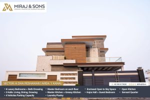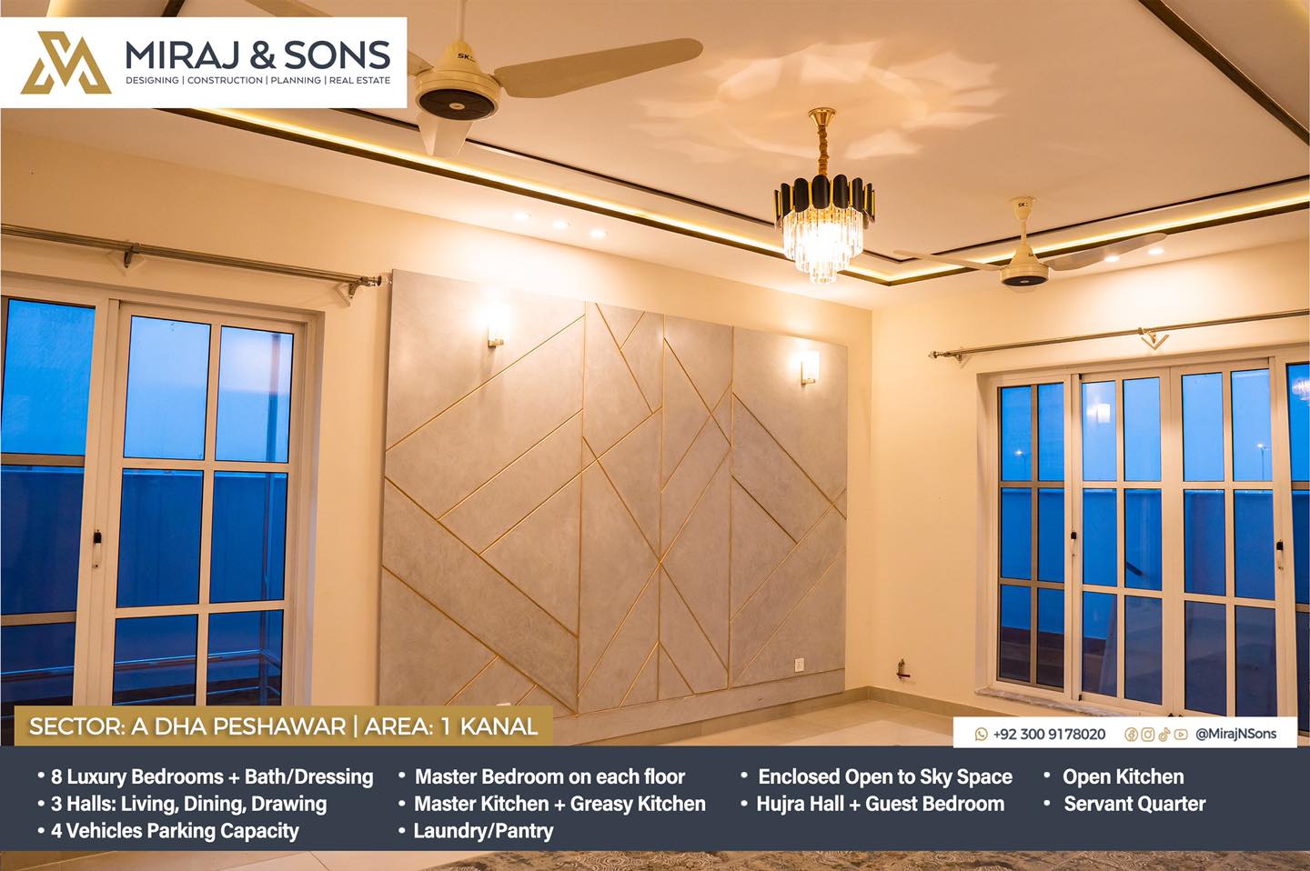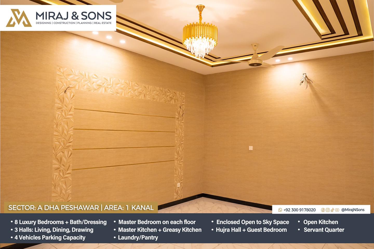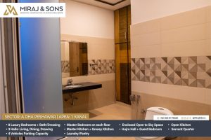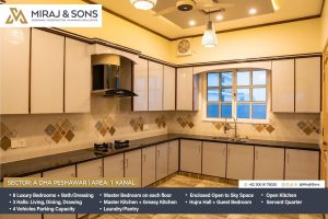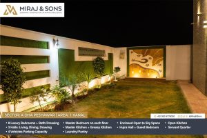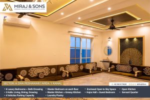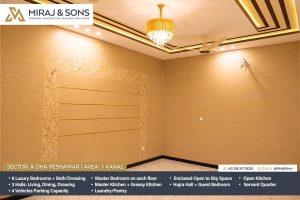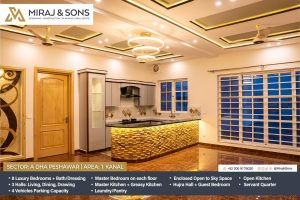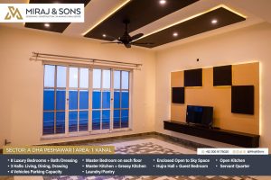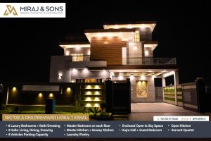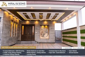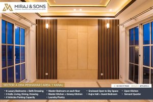 Designed to provide a luxurious modern lifestyle, this house has a contemporary aesthetic blended with a traditional touch. The 1 kanal house has a beautiful interior with mosaic artworks that add to its elegance.